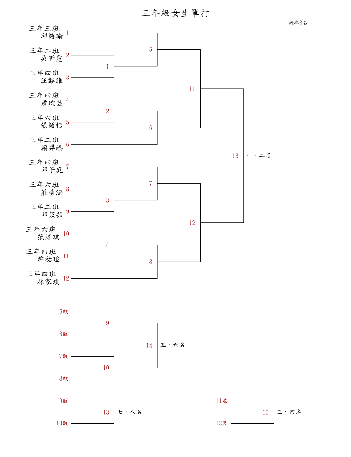 5 資料表尚未定義 三年級女生單打 單敗淘汰12 8