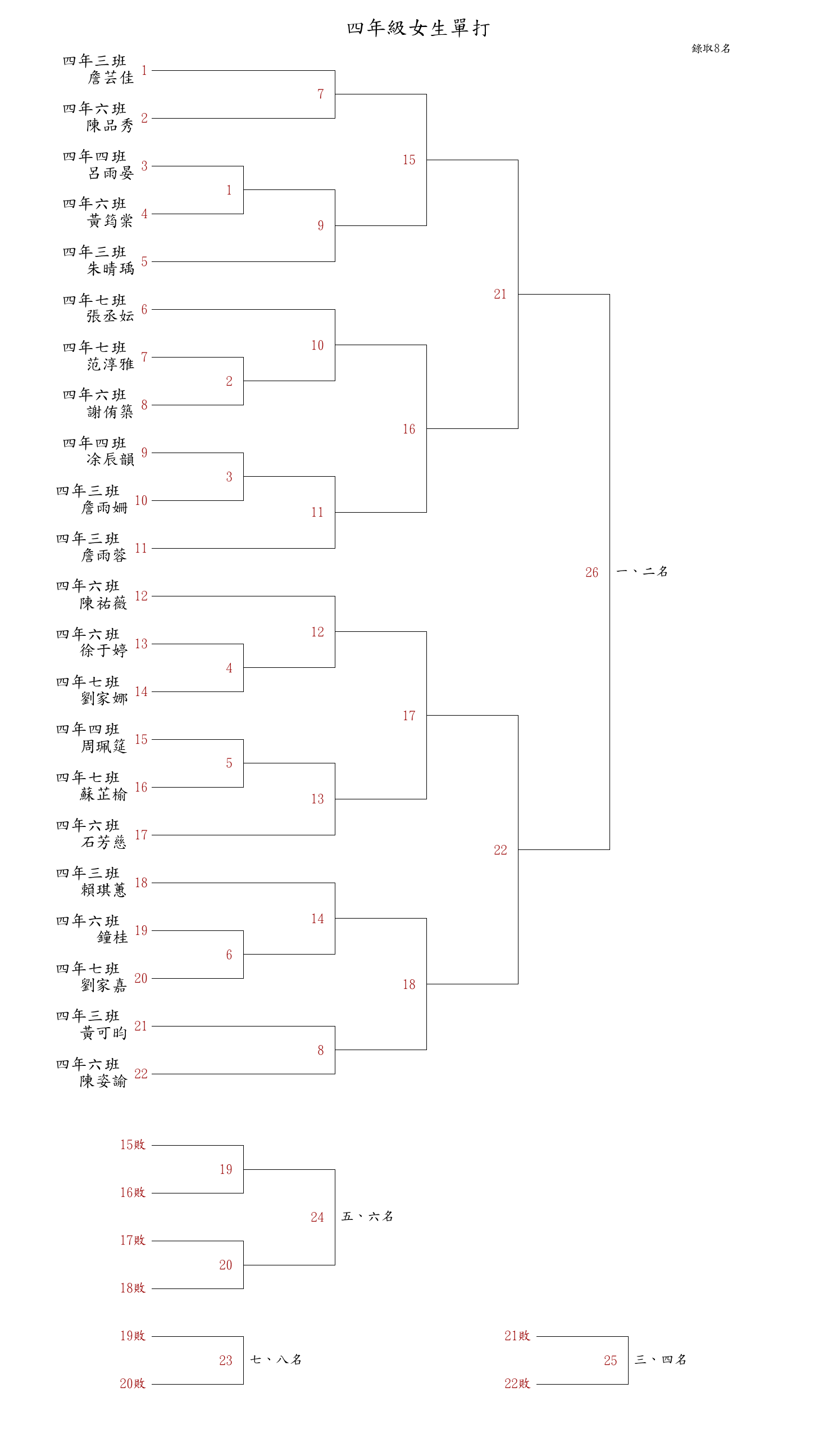 6 資料表尚未定義 四年級女生單打 單敗淘汰22 8