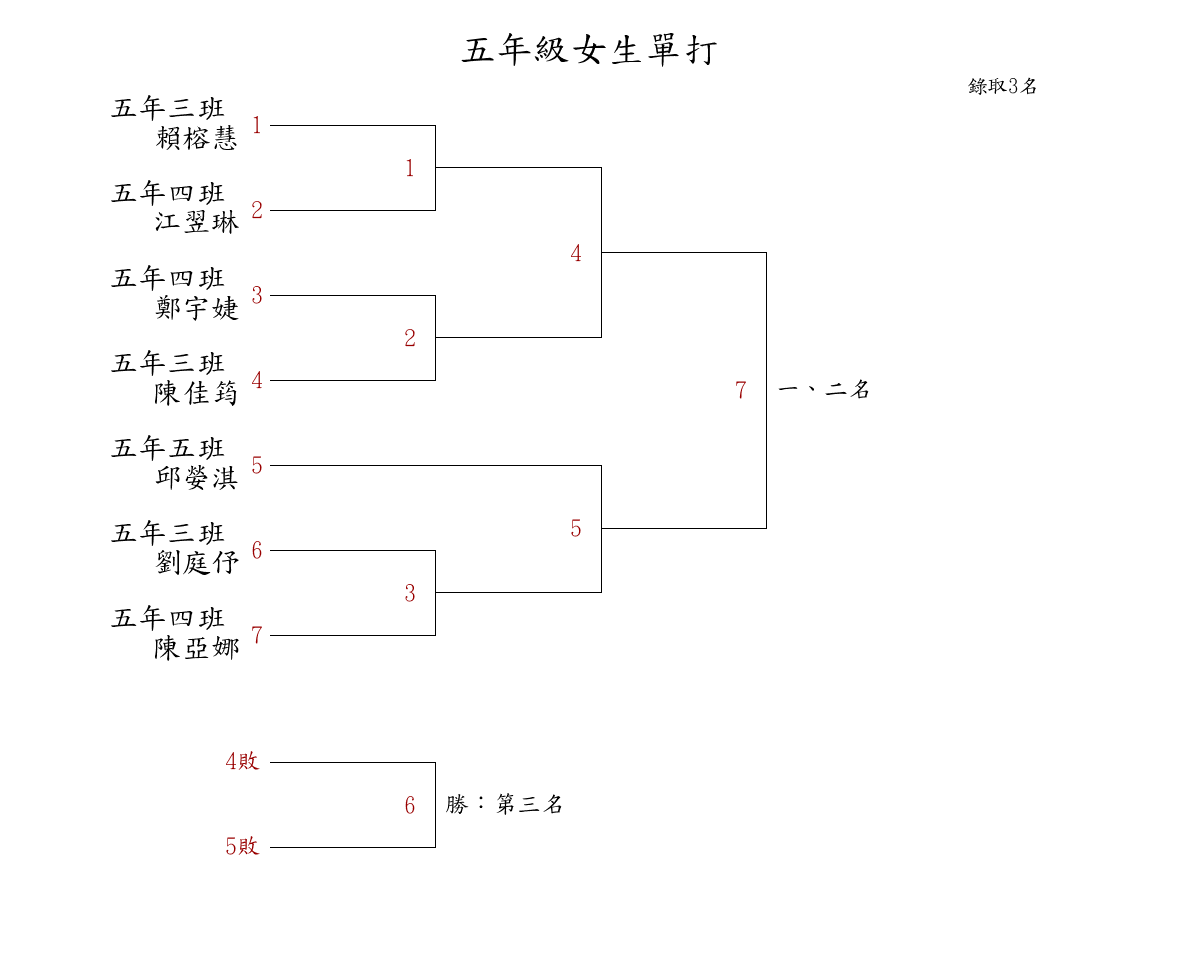 7 資料表尚未定義 五年級女生單打 單敗淘汰7 3